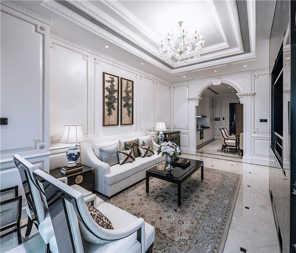 本項目公寓部分室內(nèi)硬裝、軟裝設計均由港源設計團隊完成。設計師從豪華汽車、游艇、私人飛機的高品質裝潢中獲取設計靈感;設計風格采用改良的古典歐式風格,從簡單到繁雜、從整體到局部,精雕細琢,鑲花刻金都給人一絲不茍的印象,將豪華、優(yōu)雅的涵義以新時代的面貌予以呈現(xiàn),并保留了材質、色彩的基本風格,可以強烈地感受傳統(tǒng)的歷史痕跡與渾厚的文化底蘊,同時又摒棄了過于復雜的肌理和裝飾。