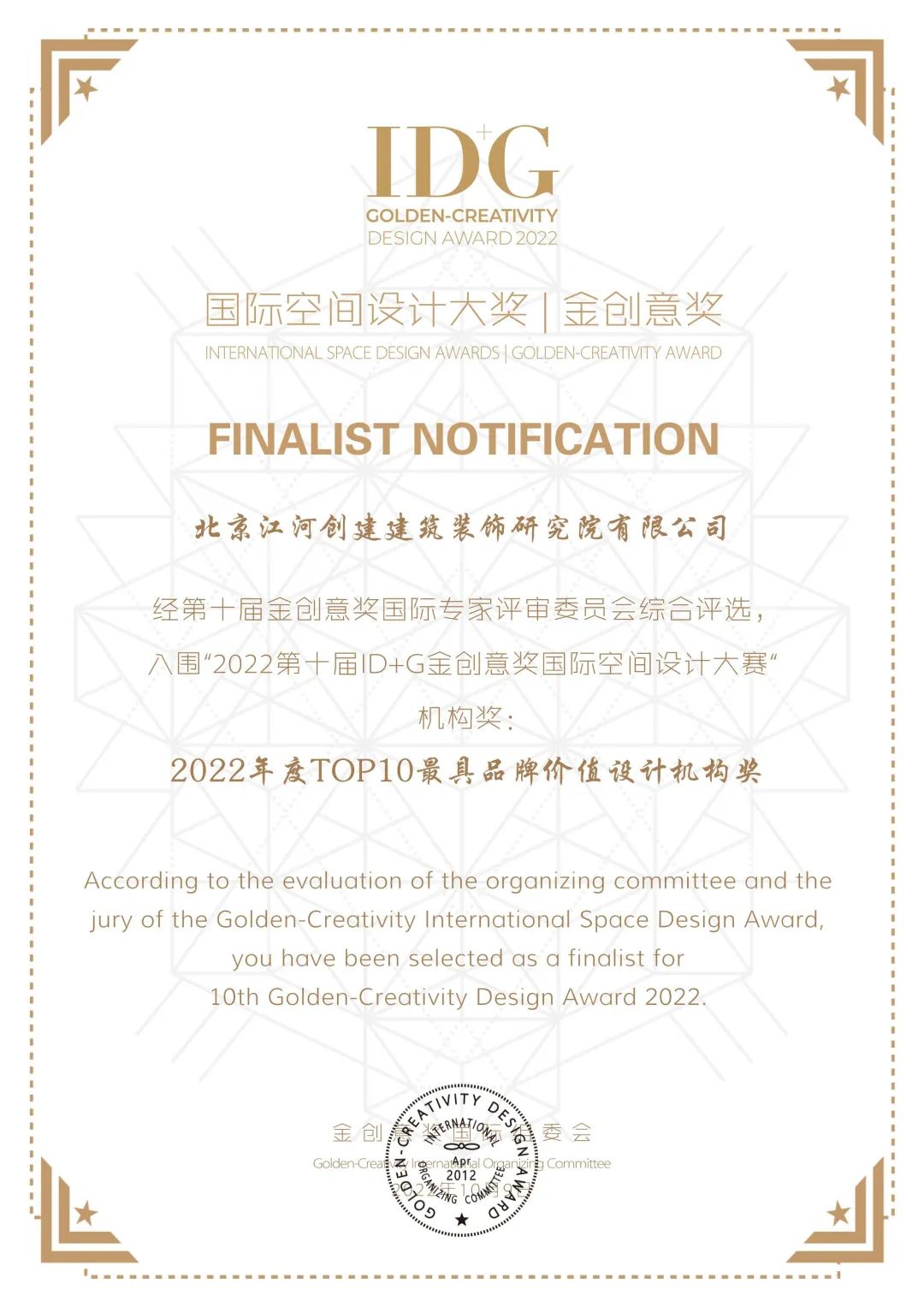 金創(chuàng)意獎是由CEIDA中歐國際設(shè)計協(xié)會和CIID88中國國際室內(nèi)設(shè)計網(wǎng)聯(lián)合主辦,由ID+G金創(chuàng)意獎國際組委會協(xié)辦,獲得SEIDI中歐國際設(shè)計研學(xué)中心和法國DESIGN CONVERGE《設(shè)計匯》雜志雙重支持的國際空間設(shè)計大獎。
