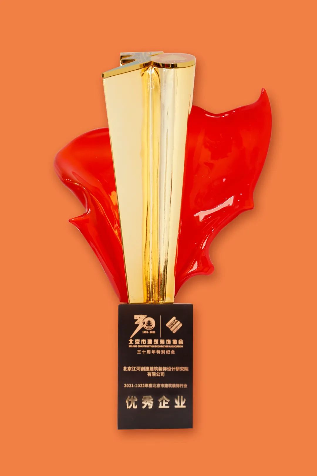 北京江河創(chuàng)建建筑裝飾設(shè)計(jì)研究院有限公司榮獲北京市建筑裝飾行業(yè)(30周年特別紀(jì)念)百名優(yōu)秀企業(yè)