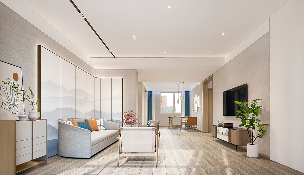 摒棄傳統(tǒng)冰冷石材,采大面積用原木色,打造一個溫馨健康得生活環(huán)境。