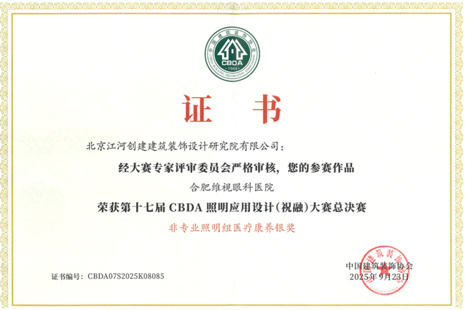 以“光合萬(wàn)象”為主題的的第十七屆CBDA照明應(yīng)用設(shè)計(jì)(祝融)大賽總決賽暨光合萬(wàn)象照明設(shè)計(jì)大會(huì)在武漢順利落下帷幕,大賽歷經(jīng)多場(chǎng)分站賽選拔,江河設(shè)計(jì)JHD作品合肥維視眼科醫(yī)院榮獲第十七屆CBDA照明應(yīng)用設(shè)計(jì)(祝融)大賽總決賽非專(zhuān)業(yè)照明組醫(yī)療康養(yǎng)銀獎(jiǎng)