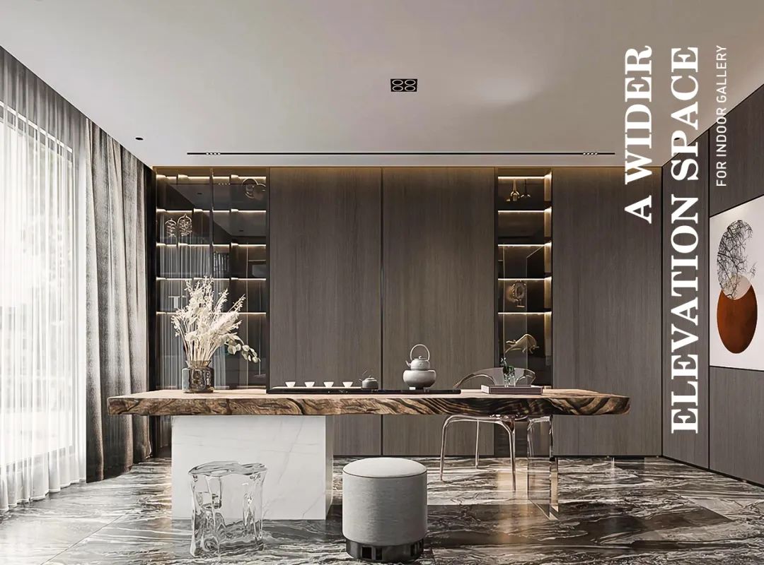 Different darkness levels of ray of light and natural elements transform the space into a tranquil and slow or dynamic place. The expression of different layers makes space-time a touching melody so as to allow people experience the charm of space art in these rhythms. Visual and sensory integration brings the state that is tranquil, relaxing or stimulates the power in inner heart to experience the space aesthetics of feeling in real sense.