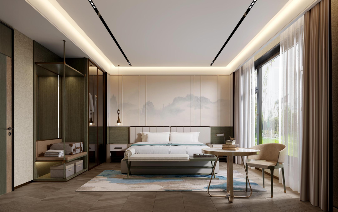 The gentle lines and mellow round corner divide a whole space and grant each part a flowing and stretchable style. Cultural features are also integrated in the natural and conservative main tone of earth, so as to create a modern, fashionable, warm and cozy space.