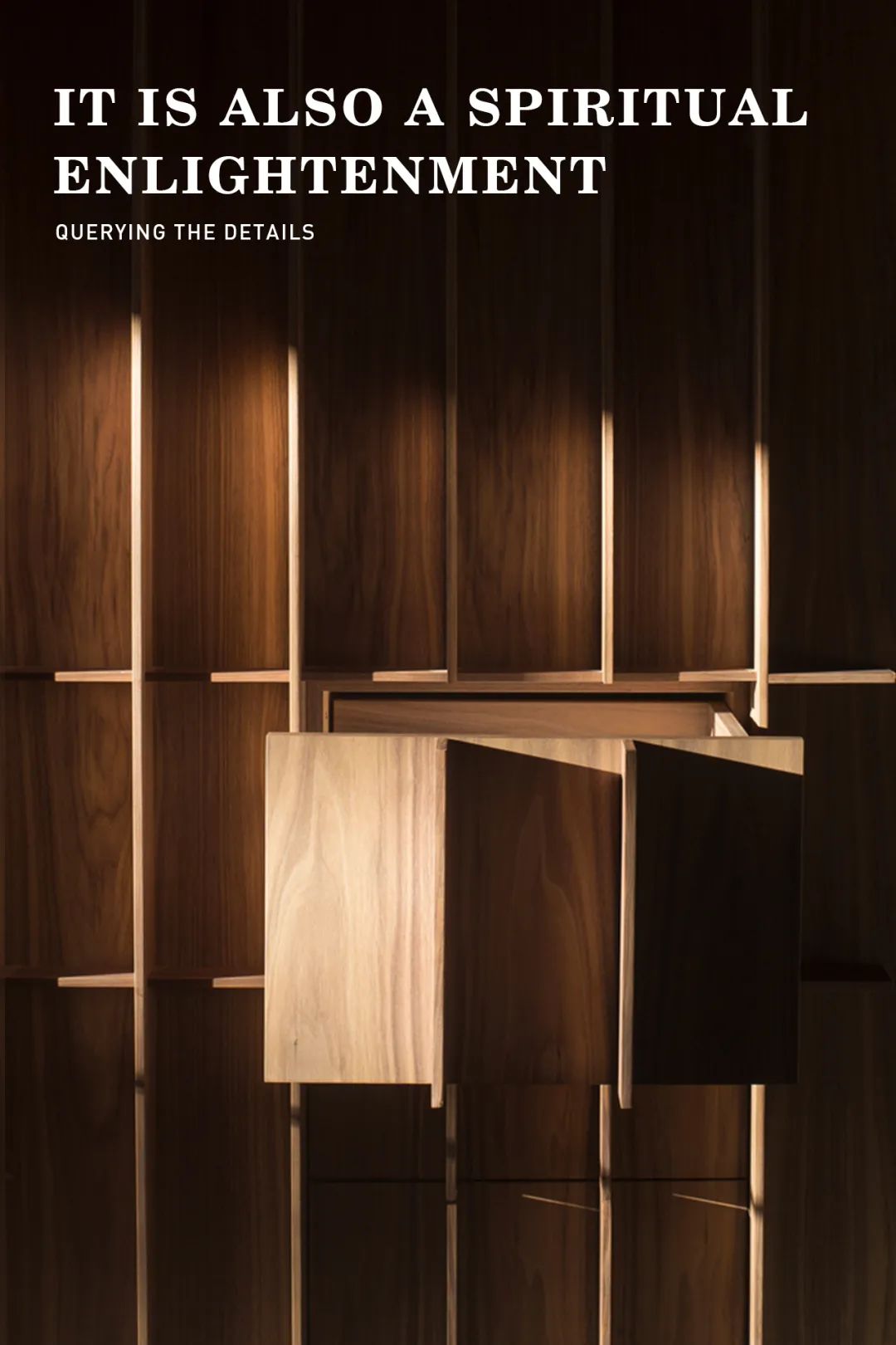 The lobby is designed in a silent way, which could guide people to think about the significance of life. The ancient wall decoration on wall seems like rolling water that triggers people’s thinking. It is a hermit that is asking his inner heart. The design is not only a space but a place that enlightens the inner feelings.
