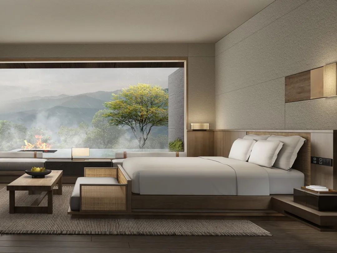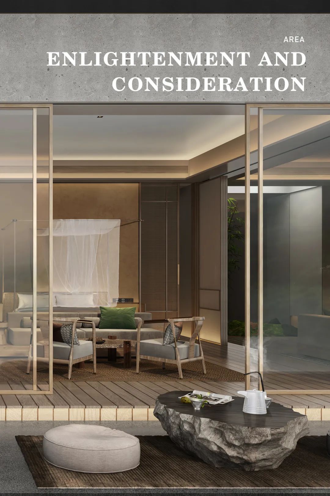 Guest rooms seem like an ocean where you can feel the freedom of life. It is a paradise for relaxation. Each space and detail reflects Zen's real meaning, making it seemingly a place for considering life and removing worries. While staying here with the embrace of Qingshan Mountain, you will be part of nature and have a chance to reconsider the essence of life.